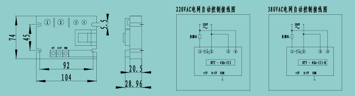 呈集同步信号的变压器、隔离控制电源、相位检测电路、 移动电路、光电隔离触发及输出可控硅为一体,有效的实现了控制电路与高压电路的 隔离,控制信号有直流输入与直流电压输入两种形式,大大满足了各种自动化控制的 需求,控制信号可由其它控制设备输出供给或直接用梭块自带电源外接一支2-10K的 电位器,能实现将可控硅导通角在0-180冈之间调节,达到调节输出电压的目的。 并可以根据用户的需求增加软启动功能。广泛用于调光、加热、焊机、电镀及变压器 调压等设备中。